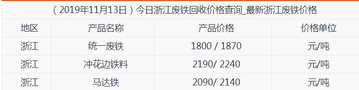 2019年11月13日宁波废铁回收价格表